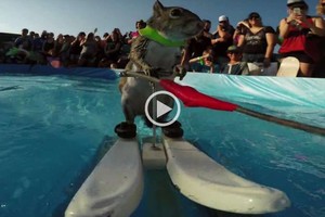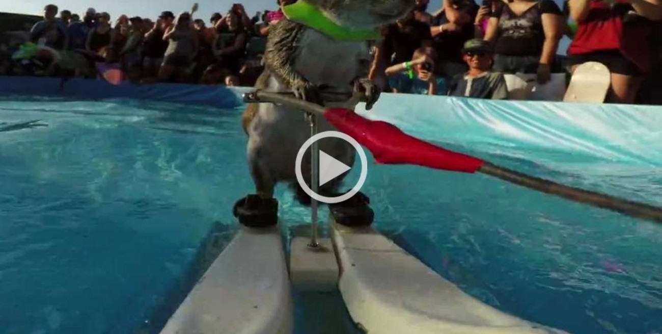 Una reconocida compañía de cámaras especiales para disciplinas extremas publicó el video con una ardilla mostrando sus dotes para el deporte en el agua.