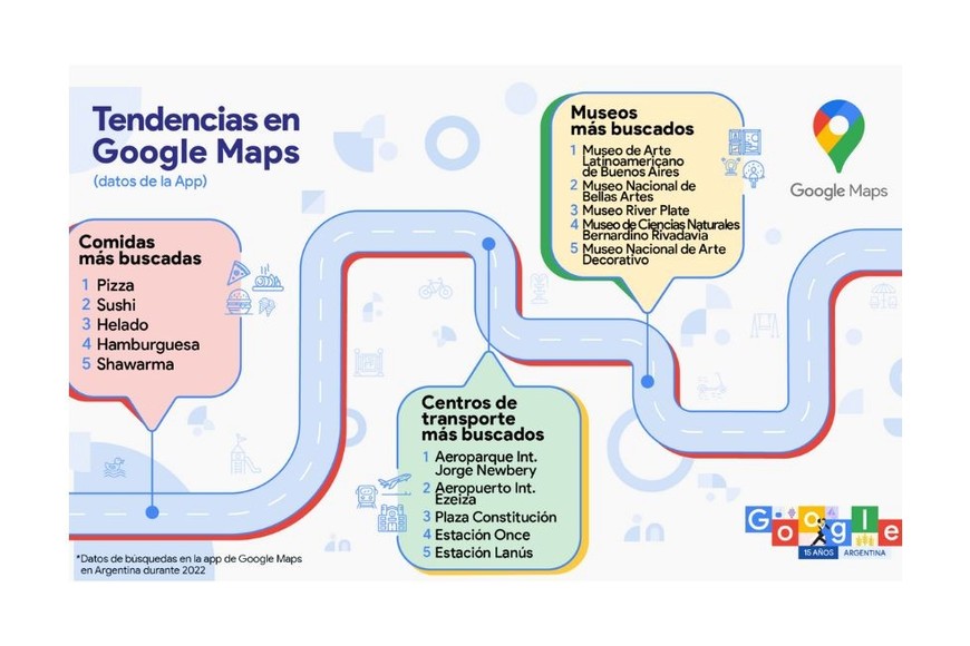 En el marco del 15° aniversario de Google en Argentina, la compañía lanzó novedades en Maps y presentó una lista de los sitios más buscados por los argentinos.
