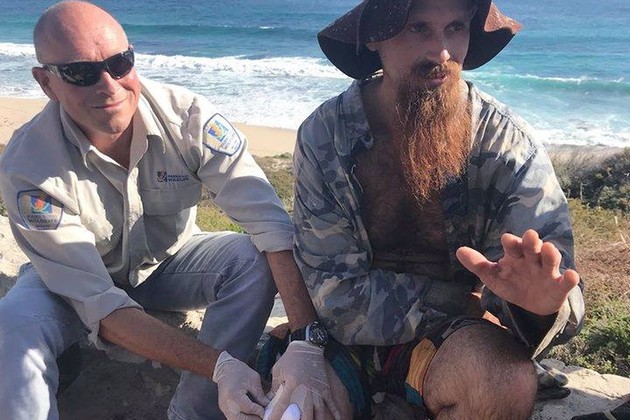 Alejandro Travaglini (37) es surfer. El domingo a las 8.30 de la mañana Fue atacado por un tiburón en la playa Cobblestones, al oeste de Australia. El gigante pez lo mordió en las dos piernas mientras luchaba contra él pegándole puñetazos.