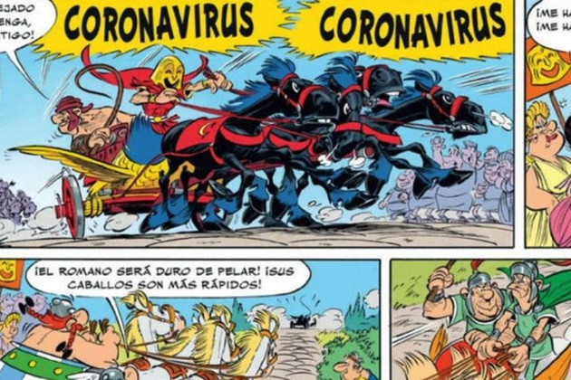 Astérix y Obélix, los personajes antológicos creados por Uderzo y Goscinny, aparecieron en un cómic de 2017 enfrentados con éxito a un personaje llamado "Coronavirus" con la acción situada en Italia, adelantándose a la batalla que enfrenta ahora el mundo contra esta nueva enfermedad.