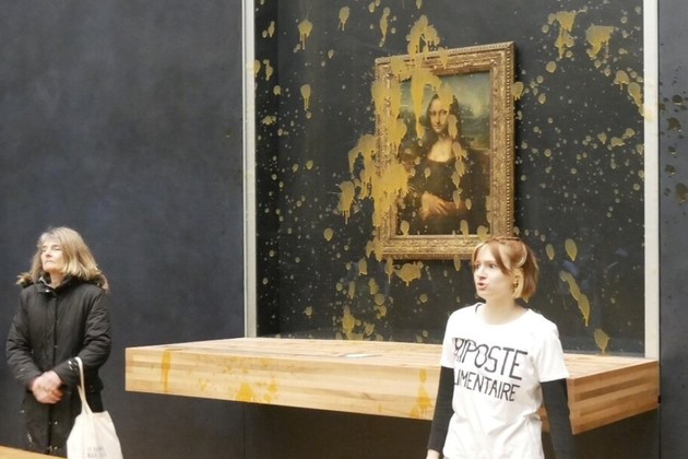 Dos activistas que forman parte del grupo Riposte Alimentaire (Respuesta Alimentaria) le tiraron sopa al vidrio protector de la obra a la par que una de ellas se expresó a los gritos: "¿Qué es lo más importante? ¿El arte o el derecho a una alimentación sana y sostenible? Nuestro sistema agrícola está enfermo".