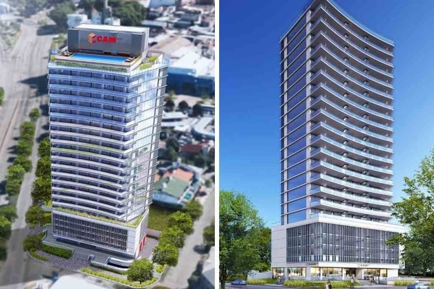 Estilo tecnificado, transparencias, alta luminosidad y vistas impactantes son algunas de las características de diseño que persiguieron para el CAM 100. “Justamente eso se busca, por ejemplo, con cerramientos que tendrán aberturas de techo a piso. Hemos hecho algunas tomas con drone y las vistas son espectaculares, con espacios que serán muy luminosos y además está estudiada la planta de departamentos, que tiene en principio cinco unidades por piso como planta básica, pero a su vez se pueden asociar de a dos, de a tres y hasta toda la planta para generar unidades mayores a quien lo requiera. Hay una flexibilidad de armado de la planta que también hace un aporte interesante al proyecto general”, precisó el arquitecto Dujovne.