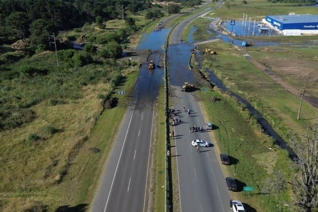 El desborde cloacal obligó a cortar totalmente la Ruta 11 entre Pinamar y Ostende.