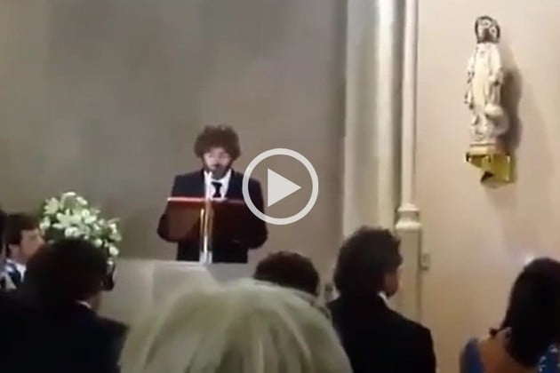 En la filmación, se observa a un hombre que sube al ambón y expresa: “Te pedimos por Inés y Santiago, para que los ilumines en este camino con amor y paz, ilumines también a sus familias para que estén a su lado y por último que ilumines a Lionel Messi para que traiga la Copa”.