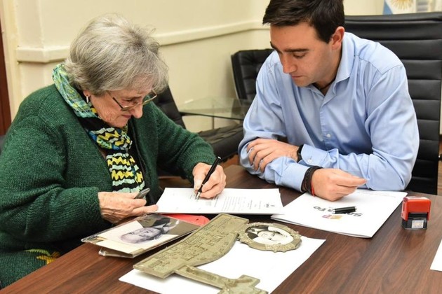 Carla De Luis, quien acaba de recuperar la placa con la foto de su abuelo materno, destacó emocionada: “Es una emoción más que nada para mi mamá que puede recuperar las fotos de sus padres. Estamos muy agradecidos de que nos hayan podido buscar y que se de este encuentro”.