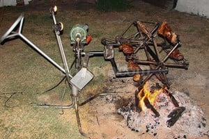 Andrés Guaita, el chacarero que se hizo conocido en el país y el mundo por inventar y patentar un asador con volante y luces para cocinar carne a las llamas, ahora diseñó un "spiedo con volante", que funciona además con un pequeño motor eléctrico.
