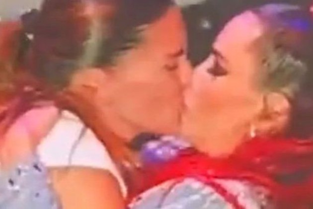 Las artistas, amigas desde la infancia, no dejaron pasar la oportunidad de dejar plasmado su recíproco amor con un fogoso “chape”.