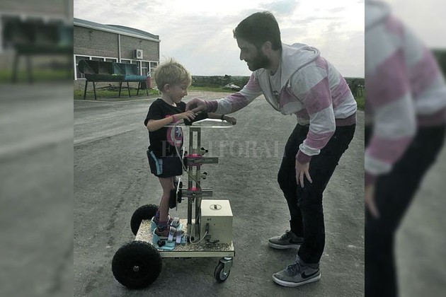 En ese momento, lo único que se podía hacer era kinesiología y tratar de sostener lo mejor que se pudiera la vida de ese niño para que cuando hubiera una medicación –y si es que la pudiéramos conseguir– estuviera su cuerpo apto para recibirla. En el transcurso de ese tiempo, del 2014 al 2018, pasaron muchísimas cosas, y una de las más importantes fue haber conocido a Alejandro”, afirmó. “Le dije: ‘mirá Ale, necesito un bipedestador porque la obra social me va a tardar 3 o 4 meses entre que lo pido, se quejan por el presupuesto y demás… y yo lo necesito dentro de 20 días. Y él, en un mes, con un grupo de amigos armó un bipedestador que Facundo usó hasta hace dos meses atrás, en ese momento no tenía motor. El bipedestador que Alejandro diseñó ahora tiene un motor. Facundo lo probó hace 15 días y con una cara de felicidad enorme vio que podía correr. ‘Mamá puedo correr’, me decía con cinco años y el viento que le pegaba en la cara. Realmente fue una experiencia única para él y la quiere repetir y quiere el bipedestador que hizo Alejandro con motor”, relató con mucha alegría su mamá.