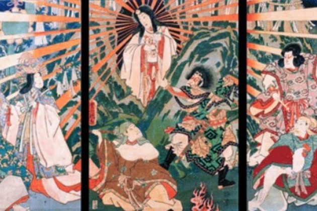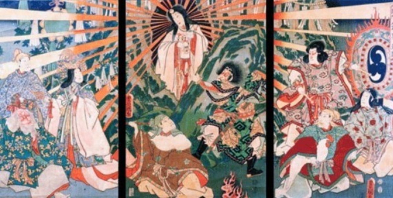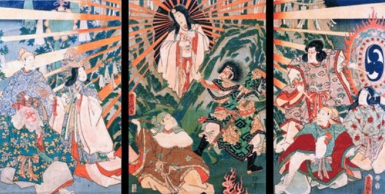 Amaterasu, encarnada como el Sol que gobierna el Universo, es la deidad principal del Shinto. Se cree que la familia real de Japón desciende directamente de esta importante diosa. Ella representa la fertilidad y hace que crezcan las plantas que dan vida, no solo a los humanos, sino también a los dioses. Como guardiana de los japoneses está representada por el emblema del sol naciente en la bandera.