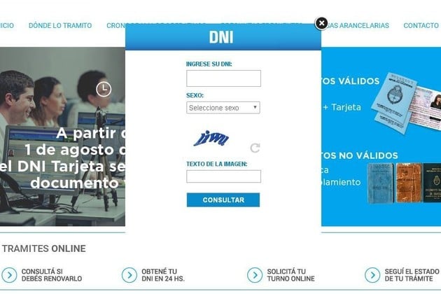Consultá si tenés que renovar tu DNI (Click en la imagen: Igrese número de DNI. SEXO, y texto de verificación.)
