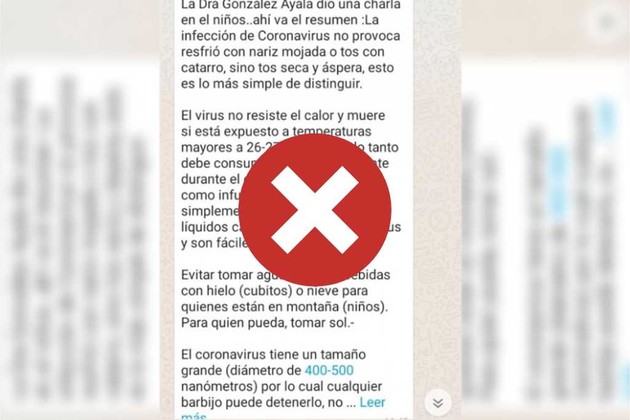 Circula por WhatsApp una cadena que cita recomendaciones sobre el Coronavirus de una doctora llamada “González Ayala”. Sin embargo, la doctora Silvia González Ayala, doctora en Medicina y titular de la cátedra de Infectología de la Universidad Nacional de La Plata (UNLP), desmintió a Chequeado que la cadena fuera de su autoría, y el texto circula en varios países con el nombre de distintos supuestos profesionales. Además, la cadena contiene varias afirmaciones falsas.