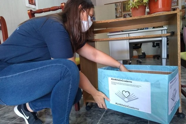 "Un niño un cuaderno" es una iniciativa de la Fundación Innovar. Recolectan cuadernos donados por la comunidad durante todo el año y los van distribuyendo en distintas localidades.