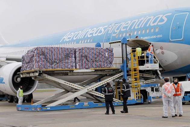 El cargamento aéreo recibido hoy, agrega el comunicado, suma "20.000 guantes a lo recibido en el marco de la iniciativa privada Argentina nos Necesita, cuyo objetivo es equipar el sistema de salud argentino".