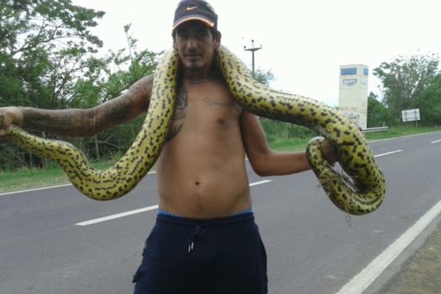 Un grupo de jóvenes que iban transitando por Ruta provincial A009 camino al Puerto Reconquista, encontraron una enorme Curiyú al costado del camino frente a la curtiembre. La serpiente medía alrededor de 3 metros de largo. Un muchacho la agarró para la foto, luego la soltó.