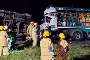 Aproximadamente a la 1.15 circulaban en el sentido Santa Fe-Rosario dos camiones, cuando por circunstancias a determinar, uno que venía atrás cargado con garrafas de gas envasado, colisionó por alcance contra otro vehículo de gran porte, que transportaba carbón y que terminó volcando su acoplado.