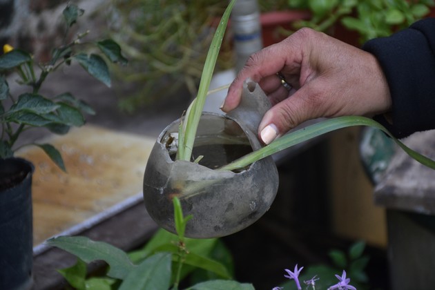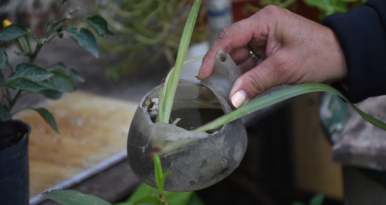 - Para aquellos que dicen "no tengo nada que pueda juntar huevos de Aedes", la novedad es que siempre hay algún objeto que acumula agua: el platito abajo de la maceta para que el riego no derrame sobre el mantel; la planta que dejamos crecer en el agua; el frasco donde termina la manguera del aire acondicionado. Son un montón de cosas que favorecen la reproducción del vector que transmite el dengue.