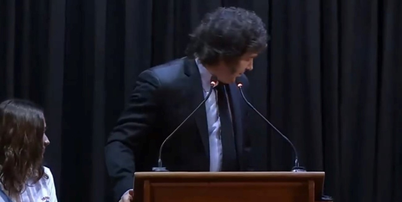 A modo de broma y para cortar con la tensión, Milei afirmó: “Como verán, mencionar a los comunistas es tan peligroso que genera problemas siempre”.