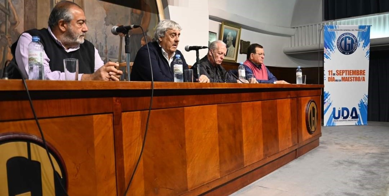 Mirá tambiénPettovello encabezó acto por el Día del MaestroEn su alocución, Héctor Daer reclamó fuertemente al gobierno nacional que cumpla con su obligación de sostener y financiar la educación pública, mientras que Andrés Rodríguez destacó enfáticamente las funciones indelegables del Estado y el importante rol que está desempeñando la CGTRA en esta compleja etapa. A continuación, Miguel Paniagua dejó un cálido saludo a todos los docentes presentes y disertó sobre las similitudes en la lucha de las áreas de educación y cultura.