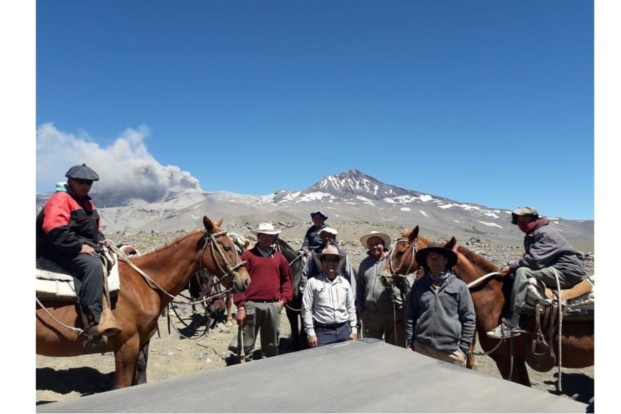 Recorrido cerca del volcán Pachón liberando cenizas en el fondo. Gentileza: "Pancho" Pinol.