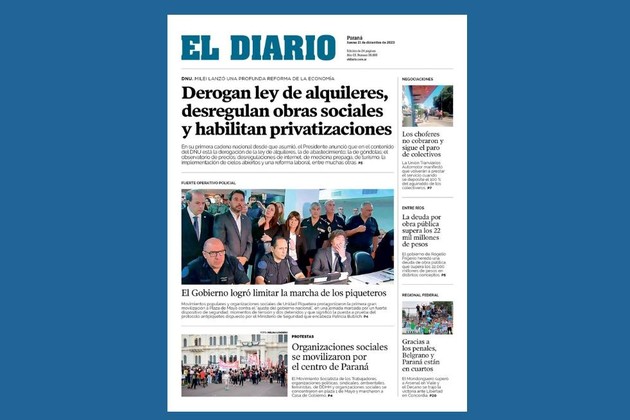 La crisis económica que se prolonga, la inflación que se acrecienta, el dólar que alcanzó un valor histórico y las dificultades para cerrar y cobrar la pauta oficial (que en el caso del gobierno de Javier Milei, no habrá), llevaron a que el histórico diario de la ciudad de Paraná -denominado precisamente El Diario- no salga a la calle con su edición impresa después de casi 110 años informando a todos los entrerrianos.
