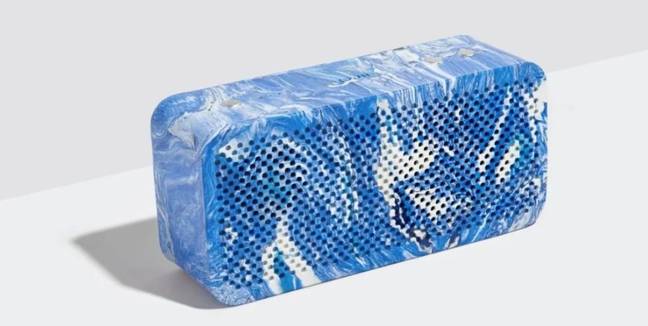 -Con 100 bolsas de plástico. Gomi está hecho con 100 bolsas de plástico y es un parlante de 25 W portátil con un gran sonido que permite llevar tu música a donde quieras sin dañar el ambiente.