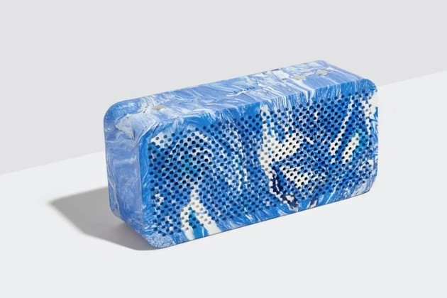 -Baterías reutilizadas. La energía del parlante nace de los desechos: su sistema de alimentación interno está hecho con baterías reutilizadas del sistema de bicicletas eléctricas británico Lime.