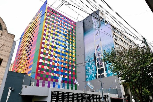 Sobre una de las paredes de Pasteur 633, la institución inauguró una nueva obra de arte llamada “Colores de AMIA”. Foto: Archivo