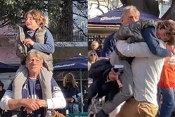 Lo que era una angustiante escena se transformó en risas gracias a la intervención de la banda que tocaba en la Plaza Dorrego.Después de 10 minutos de espera, Eduardo apareció en la plaza y cuando vio a su hijo se dieron un fuerte abrazo. "Esto le da un verdadero motivo para hacer una canción", comentó el guitarrista.