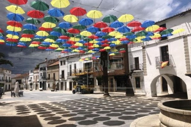 Los conocidos "paraguas de Malpartida de Cáceres" regresaron a la plaza mayor de esta localidad, aunque este año su objetivo es más por "el color" que por "el calor", pues esta iniciativa, que surgió en 2014 para generar sombra ante las altas temperaturas, busca ahora mitigar el desasosiego de la pandemia del coronavirus