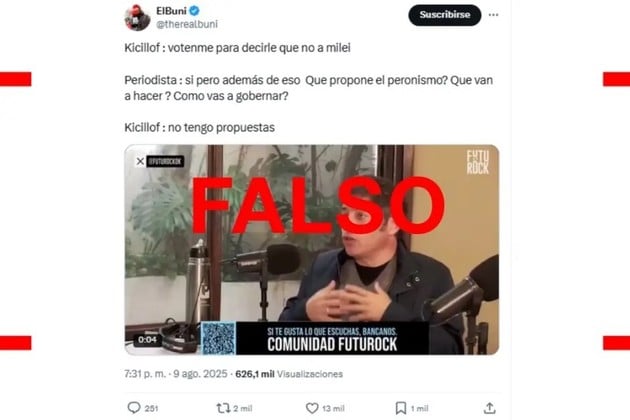 El gobernador de la provincia de Buenos Aires, Axel Kicillof (Fuerza Patria), brindó una entrevista en la radio Futurock el sábado 9 de agosto de 2025. En ese contexto, comenzó a circular en redes sociales un presunto fragmento en el que se le consulta a Kicillof por las propuestas del peronismo, a lo que el gobernador habría respondido: “Hoy no tengo una propuesta, tenemos que buscarla”.