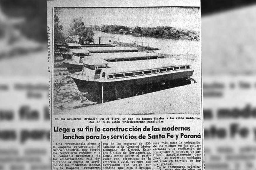 Aquel croquis que presentó El Litoral en el ‘65 se hizo realidad un año después. En abril de 1966, el diario daba cuenta de la última etapa de construcción de las embarcaciones. El artículo también estuvo acompañado por una foto de los ferries en Tigre, donde estaba el astillero.