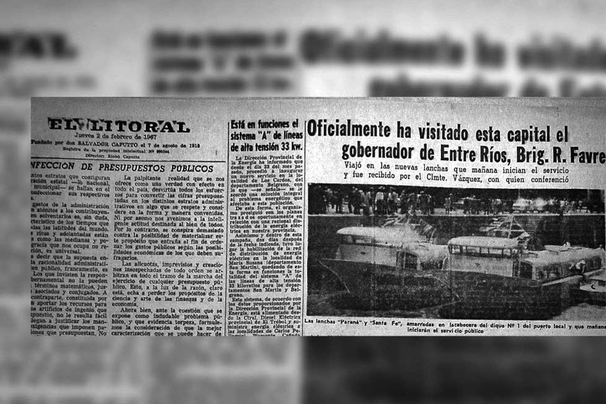 Meses más tarde, ya en el verano del ‘67, El Litoral volvió a poner en agenda el tema. Ocurría que para esa fecha zarparon desde Tigre las dos primeras embarcaciones destinadas a conectar Santa Fe - Paraná. Cada uno de los ferries llevaba los respectivos nombres de las capitales provinciales.