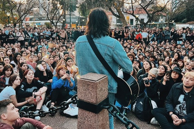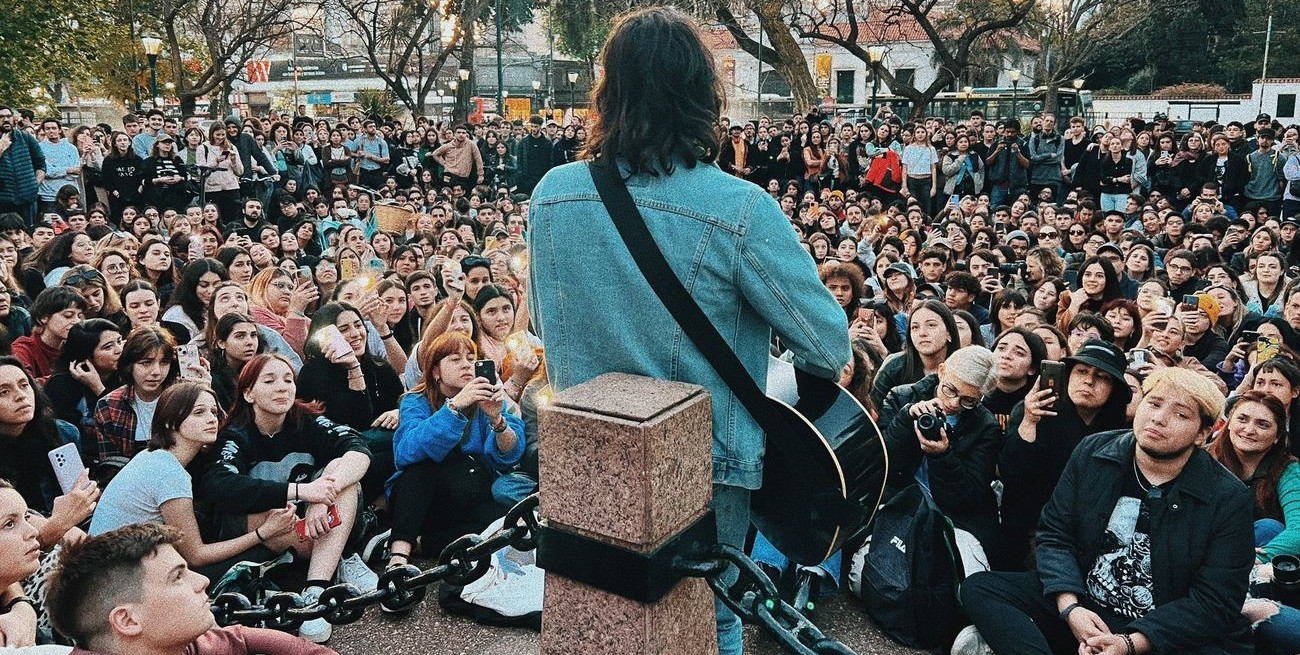 Mateo Sujatovich celebró los tres años de la salida del disco “Cabildo y Juramento” tocando la guitarra en la esquina.