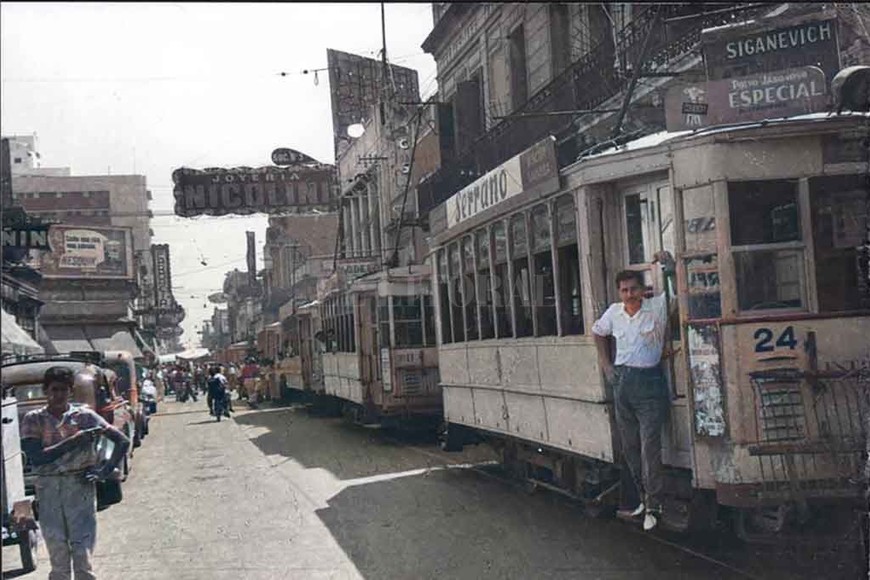 960, Tranvías Detenidos En San Jerónimo (jornada de paro).Foto: Archivo El Litoral