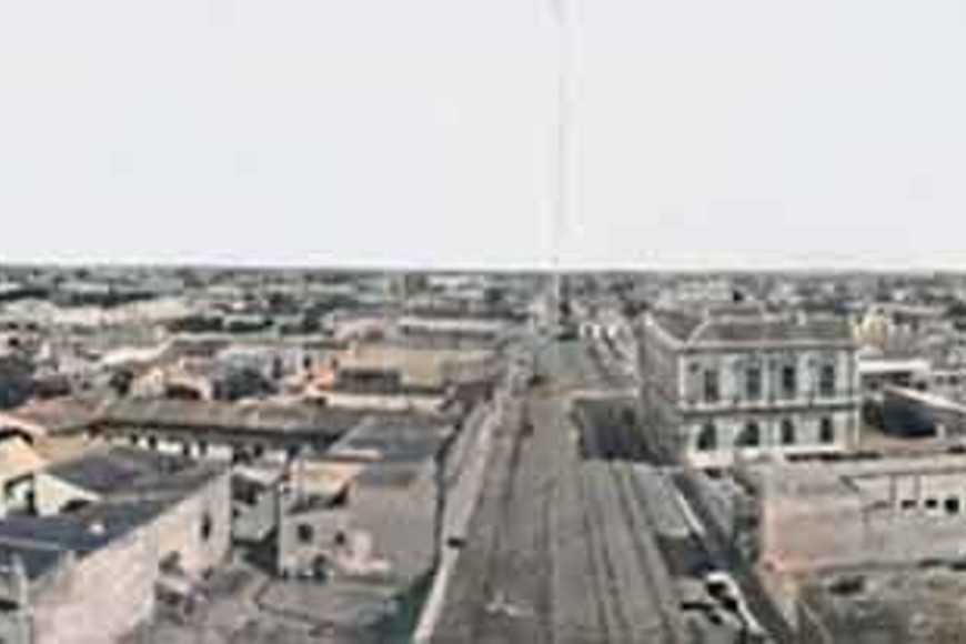 Santa Fe, c. 1900. Autor no identificado. Panorámica de 180º de la ciudad, tomada desde la estación «La Francesa» del Ferrocarril de Santa Fe hacia el oeste. A la derecha, las dependencias administrativas del Ferrocarril Central Francés y la plaza España. La imagen es el resultado de la yuxtaposición de 4 fotografías consecutivas. Archivo General de la Provincia de Santa FeFoto: Archivo El Litoral