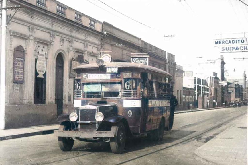 Colectivo Linea "g" por Calle Suipacha. 1950.Foto: Archivo El Litoral