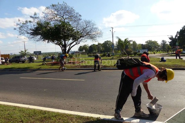 En la avenida Aviadores del Chaco, por donde circulará el papamóvil, se trabaja a destajo. Mientras el complicado tránsito se mantiene, se desvía por dónde se puede porque las tareas de bacheo y pavimentación aún están vivas. Grupos de empleados al servicio del gobierno están pintando a mano los cordones de las avenidas y maquinaria especial se encarga de un barrido mecánico.