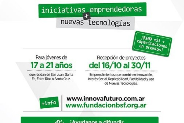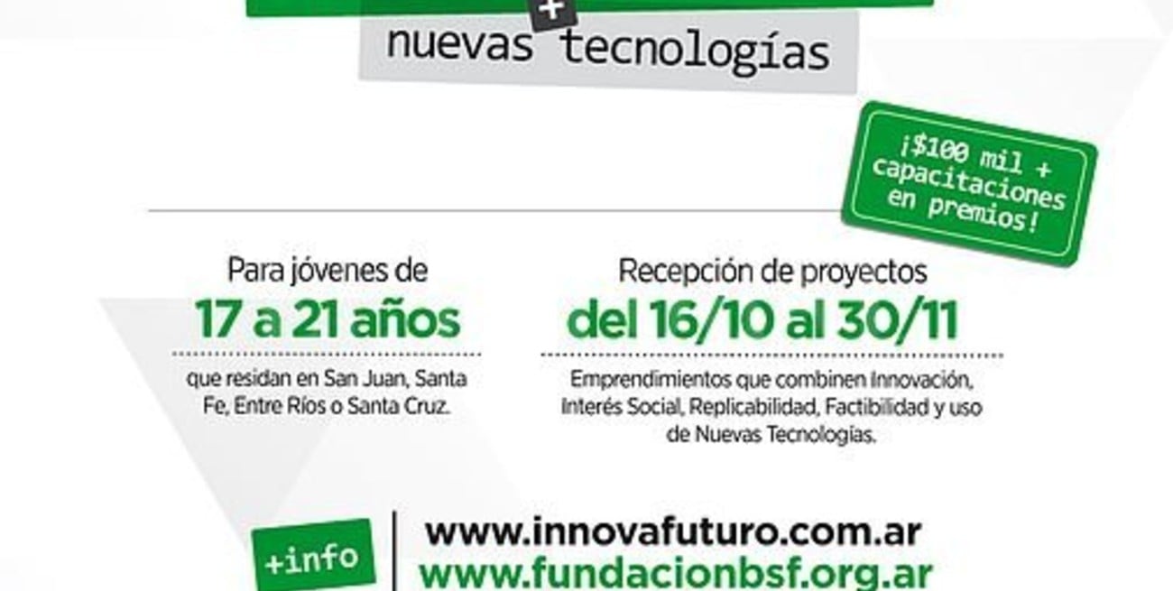 Las Fundaciones Grupo Petersen premiarán con 100 mil pesos al ganador del Concurso 2018 “Innova Futuro”, que tiene por finalidad incentivar entre los jóvenes de 17 a 21 años el desarrollo de emprendimientos asociados al uso innovador de las nuevas tecnologías.