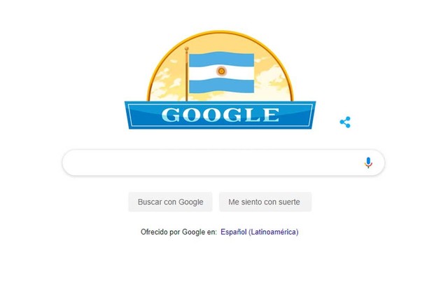 Quienes ingresen al inicio del buscador podrán apreciar la bandera celeste y blanca flameando en lugar característico de la marca.