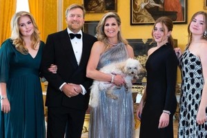 En cuanto a la reina Máxima, aparece con un vestido plateado y un collar y un brazalete de diamantes. La princesa Alexia, hija mediana de los reyes, lleva un traje de Zara de color negro como el traje de smoking de su padre y aparece con las uñas pintadas de un llamativo color azul, mientras que la benjamina de la familia, la princesa Ariadna, viste un traje estampado de la firma de lujo italiana Missoni, con un hombro al aire como el vestido de su hermana mediana.