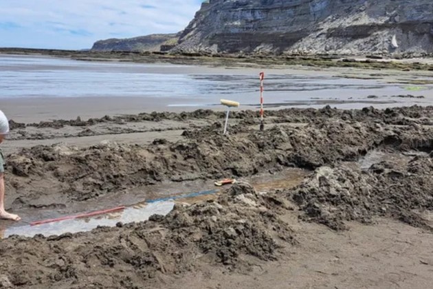 Hallaron las huellas fósiles de un ave gigante que habitó hace aproximadamente 8 millones de años en la costa de la provincia de Río Negro, en la Patagonia argentina.