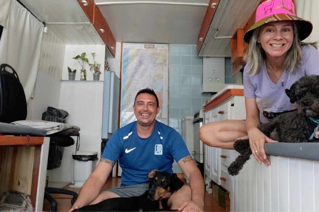 "Somos respetuosos del espacio del otro, cargamos todo lo que podíamos de nuestra casa en el colectivo", señaló. El Mercedes Benz, de 10,8 metros de largo y 2,50 metros de ancho, incluye una habitación, un baño con ducha y agua caliente, inodoro seco, cocina, comedor y todas comodidades esenciales.