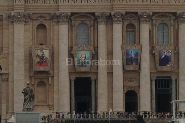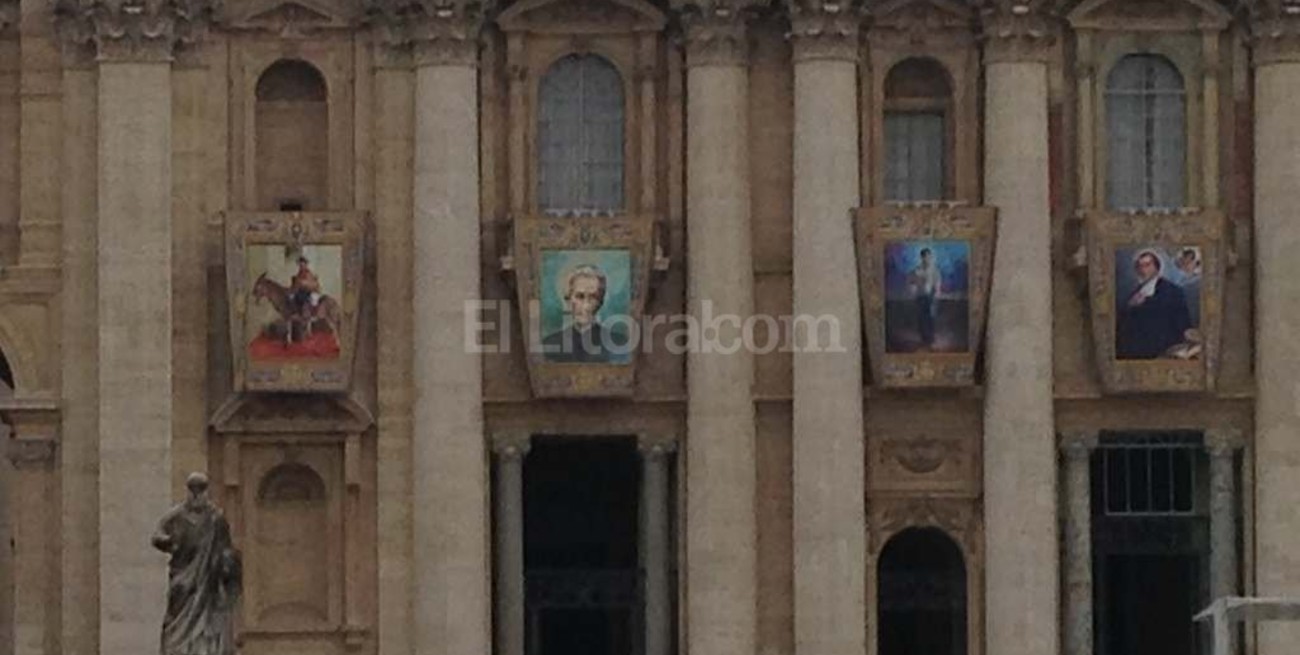 El tapiz con la imagen del cura José Gabriel Brochero, que el domingo será canonizado y se convertirá en el primer santo nacido y muerto en Argentina, ya cuelga en el frente de la Basílica de San Pedro, mirando a las miles de personas que pasan a diario por la tradicional plaza vaticana.