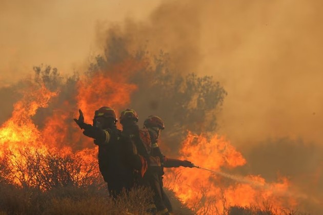 El incendio, que se declaró el miércoles por la tarde cerca del pueblo de Achlia, se ha propagado rápidamente por terreno boscoso y montañoso debido a los fuertes vientos y las altas temperaturas.
