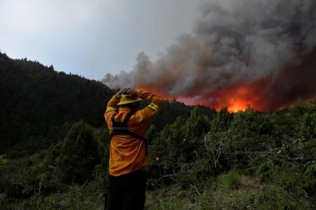 La ola de calor que azota al país complica la dramática situación que se vive en Bariloche desde el pasado 7 de diciembre, cuando una tormenta eléctrica provocó los incendios que ya arrasaron alrededor de seis mil hectáreas. Con las altas temperaturas, los focos que no estaban extinguidos se reactivaron en los últimos días.