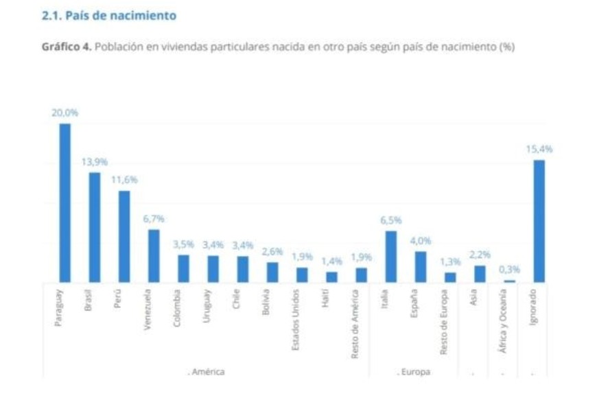 Al igual que en el Censo de 2010, en este nuevo estudio ocupan el podio los inmigrantes arribados desde Paraguay (ellos son un 20 por ciento del total).