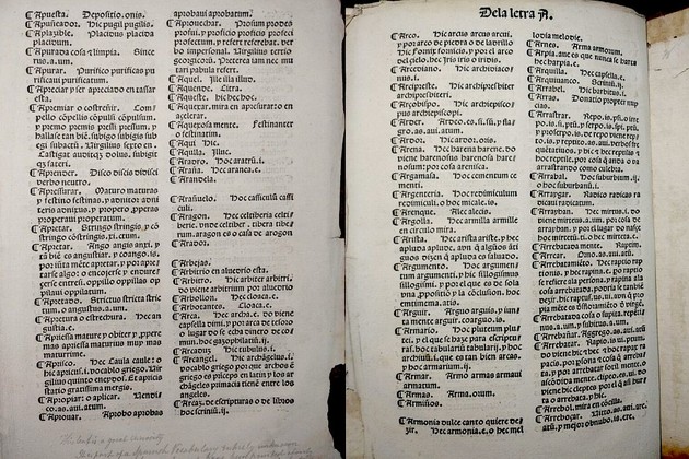 "Hay que aclarar que existe un vocabulario previo que contiene palabras en castellano, pero no en un rol protagónico. El primer diccionario que presenta palabras en español entre sus definiciones es el Universal Vocabulario en latín y en romance (UV) de Alfonso de Palencia de 1490: en una columna es un diccionario latín-latín (palabras latinas, definidas en esa misma lengua), definiciones que son en la columna de al lado traducidas al castellano", explicó Hamlin.