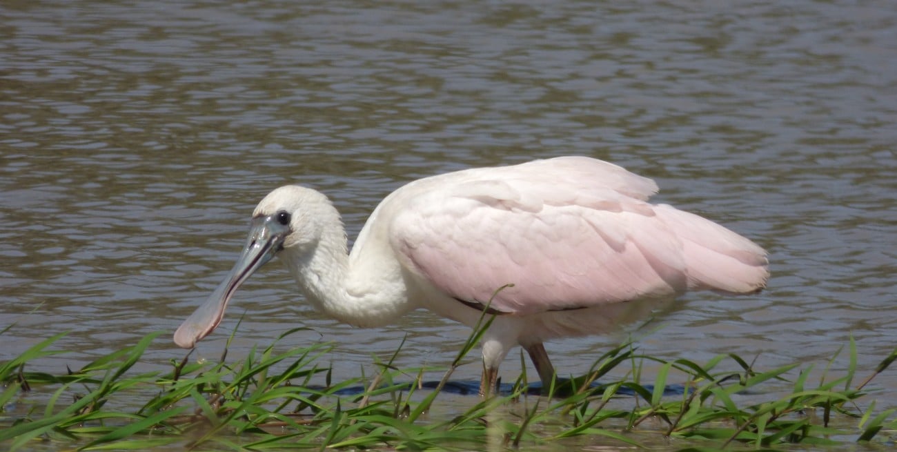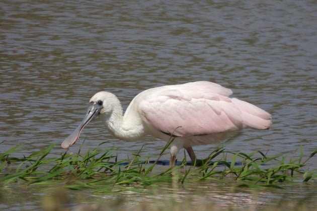 Espátula rosada (Platalea ajajaja). Un ave acuática grande rosada, la cola es de color del sorbete de naranja. El pico tiene forma de una cuchara grande y plana. Se alimenta de camarones y otros invertebrados acuáticos filtrando el agua mientras mueve su pico de lado a lado.