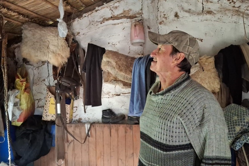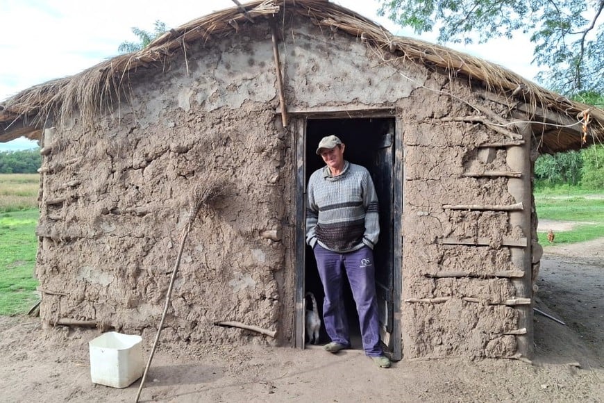 “Yo soy oficial albañil”, se presenta orgulloso don Orrego, y recibe a la comitiva. “Este es mi rancho”, invita a pasar. Afuera hay sólo un claro de tierra frente a la noble construcción natural, un par de gallinas que corretean, un perro que duerme a la sombra de un árbol y su caballo. El resto es monte tupido. Adentro el paisano tiene un catre, un calentador a leña, una botas con barro, la montura de su caballo y un par de cueros y lanas para cubrirse del frío.
