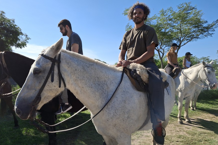 Rubén Blanco encabeza la tropa y guía al resto. A paso lento va contándole a la gente sobre el lugar. Por momentos hay que esquivar las ramas del monte, porque el caballo avanza y no da tregua. Luego vendrá una gran laguna y unos esteros muy preciosos. El baquiano ensilló temprano cada caballo y le enseña a trepar al lomo a cada uno. El paseo es por una zona tupida que parece impenetrable. Pero los caballos avanzan y sus jinetes sienten las rampas y las flores que acarician o raspan las piernas. Todo termina donde comenzó, en la tranquera del Portal del Humedal.
